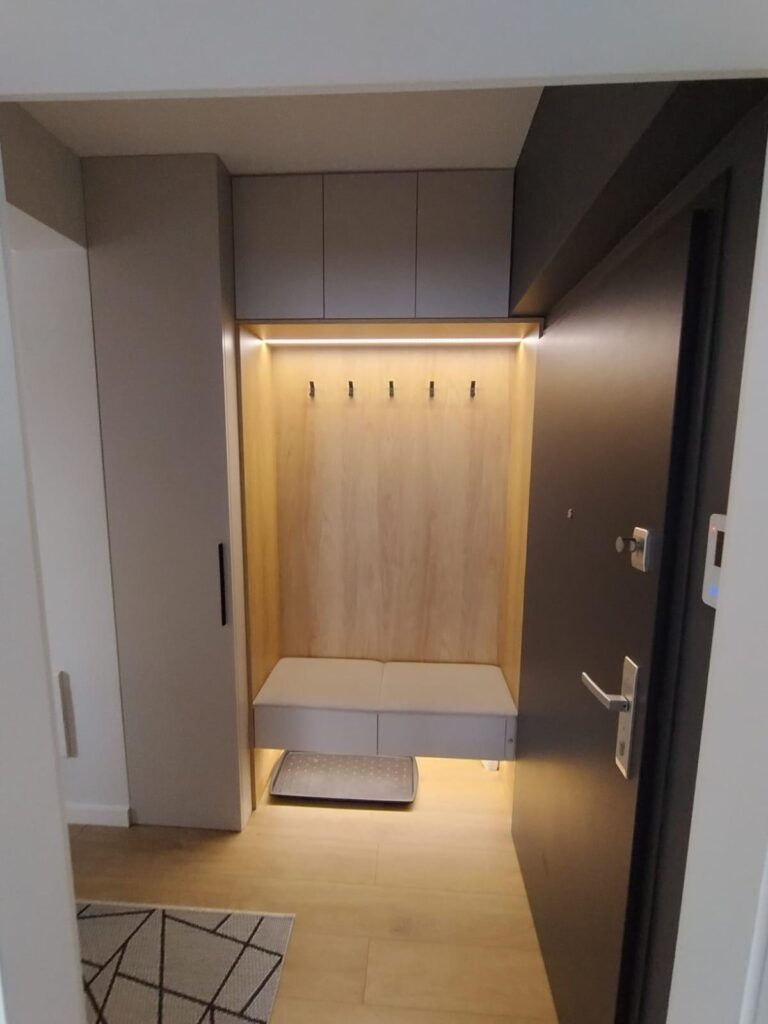 Przedpokój to wizytówka domu, a funkcjonalna zabudowa przedpokoju pomaga go idealnie zorganizować. Projektuję pojemne szafy wnękowe z drzwiami przesuwnymi oraz wygodne siedziska zintegrowane z szafkami na buty, wprowadzając do wejścia trwały porządek.
